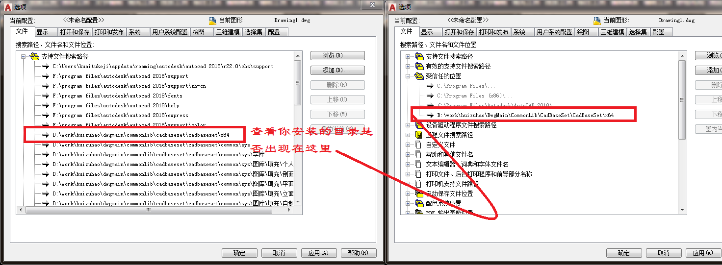 1、查看支持路径是否有快图ARX所在目录,高版CAD也要查看信任目录。如果没有,请添加。